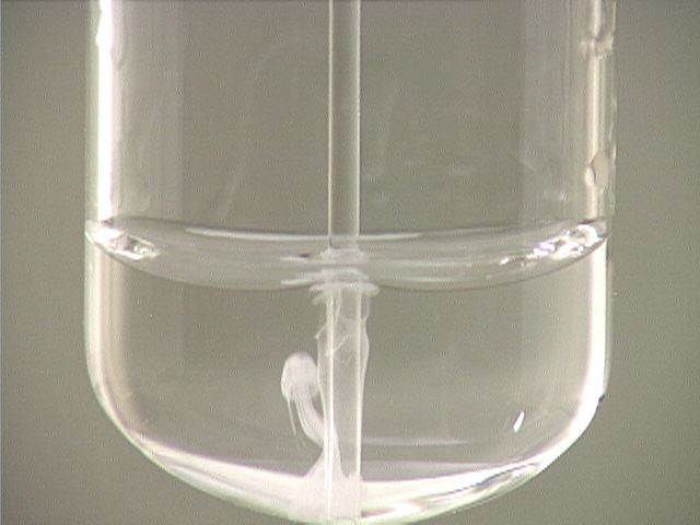 Here, ammonia (NH3) is added to lead(II) nitrate (Pb(NO3)2). The result is a white precipitate.
