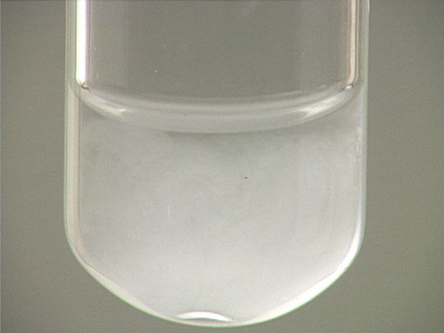 Here, sodium sulfide (Na2S) is added to strontium chloride (SrCl2). The result is a white precipitate after a delay.
