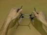 The chair conformation of cyclohexane can be twisted into the boat conformation. Further twisting results in a second chair conformation. By labeling one axial substituent with a white sphere you can see how the axial position of one chair becomes equatorial by twisting into the second chair conformation.