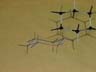 A model of the chair conformation of cyclohexane is oriented so that its outline reveals the shadow of a chair. Tracing the projection of this outline shows how the chair conformation is portrayed on a flat piece of paper. First, the outline of the carbon skeleton is drawn, then the positions of the hydrogen atoms. Notice there are 2 types of bonds in chair cyclohexane - axial bonds that are perpendicular to the ring and equatorial bonds that are roughly in the plane of the ring.
