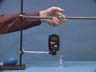 Discussion The experiment is set up so that the times at which the liquid reaches the 0 mL and 3 mL marks on the pipet may be observed. The rate of flow depends on the size and shape of the molecules as well as on the types of intermolecular forces involved. With these movies, it is possible to determine the relative viscosities of water, hexane, octane, 2,2,4-trimethylpentane (isooctane) and 1-pentanol from measurements of the times when the meniscus passes the zero and 3 mL marks on the pipet. Viscosity is inversely proportional to the elapsed time. The rate of flow of a liquid depends on the magnitude of the intermolecular forces and the shapes of the molecules. All molecules experience London forces, due to the polarizability of the electron cloud. Since hexane is smaller than octane, its intermolecular forces are weaker and it flows more rapidly. Although the sizes of the octane and 2,2,4-trimethylpentane (called isooctane because it is an isomer of octane) molecules are similar, the more compact isooctane molecule experiences smaller forces than the straight-chain n-octane molecule. In general, branch-chained isomers are less viscous and have lower boiling points than straight-chain isomers. Although water molecules are much smaller than hexane molecules, water is more viscous than hexane. This is due to the hydrogen-bonding in water, a much stronger intermolecular attraction than the London force. Compare the hexane and 1-pentanol molecules. Both have similar sizes and shapes, so the London forces should be similar. However, 1-pentanol is much more viscous, due to the hydrogen-bonding between the OH group at the end of the molecule. Viscosity data at 20°C: