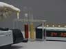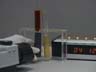 Bromine is added to two test tubes containing pentane. One test tube is covered with black paper. Both tubes are irradiated with light from a slide projector. The red color of bromine disappears from the tube exposed to light. After the light is turned off, the paper is removed. The tube not exposed to light retains the color of bromine. The vapor above each tube is tested with pH paper. The test tube which lost the color of bromine shows the presence of an acidic gas - hydrogen bromide.