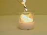 Calcium carbide lumps are dropped into a beaker of water. Bubbles of flammable acetylene gas are produced.