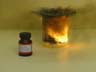 6M hydrochloric acid is added to sodium hypochlorite bleach. The beaker is covered and green chlorine gas fills the container. Calcium carbide is then added. The bubbles of acetylene which form burst into flame and soot is deposited on the walls of the beaker.