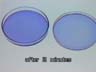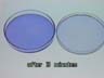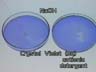 Petri dishes contain aqueous solutions of crystal violet. One dish also contains the cationic detergent cetyl trimethylammonium bromide. Sodium hydroxide is added to each dish. The mixture containing detergent reacts much faster.