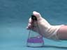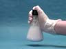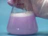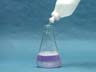 Water is added to a flask of colored kerosene. The flask is stoppered, shaken, and the two liquids separate. Soap is added to the flask and it is shaken again. The soap emulsifies the kerosene and disperses it throughout the water.