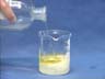 Adding a solution containing a heavy metal, such as lead nitrate, will cause egg white proteins to denature and precipitate. A white solid is formed.