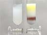 The second column fractionates smaller molecules. Riboflavin, which has a molecular weight of 376, and hemoglobin are loaded onto a second column. This column fractionates molecules with molecular weights less than 700. In this case, hemoglobin passes through the column first since it is larger than riboflavin. Riboflavin is absorbed onto the gel matrix and its elution is slower than hemoglobin. The two molecules are eluted at different rates and are separated.