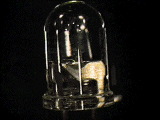 LED under microscope An operating LED, viewed under a microscope at 20x magnification while external background illumination is adjusted. With the darkest background illumination, only the glowing semiconductor is visible. (Companion Figure 7.22) |
