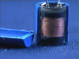 Choke coil A choke coil that has been cut open to expose its 150 m of fine copper wire is shown. (Companion Demonstration 7.4) |