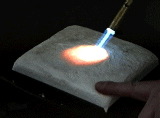 Shuttle tile A space shuttle tile is exposed to intense heat from a torch. Its poor thermal conductivity is illustrated by the ability to touch the tile a short distance away from the heated region. |