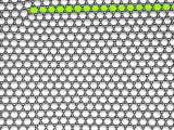The previous animation is repeated with the dislocation now highlighted in green. The atoms comprising the "extra" half-plane change as the dislocation moves. (Companion Figure 6.8)