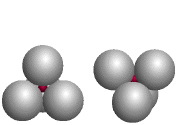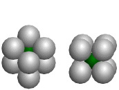 A view of the tetrahedral hole (left) and a view of the octahedral hole (right), constructed with the ICE Solid State Model Kit. (Companion, Figure 5.18A and 5.14A)