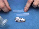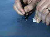 A diamond scribe scratches a piece of glass. (Companion Demonstration 7.8 and Experiment 2)