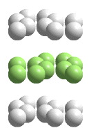 More atoms fit in the same area when they are close packed rather than square packed. This movie shows the shifting of atoms from the less efficient square packing to the more efficient close packing. This demonstration can be performed using, for example, a 6 x 6 grid of pennies on an overhead projector.