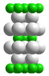Layers of sulfur atoms that do not sandwich molybdenum atoms are in direct contact with each other. These like-charged sulfur layers repel each other, and are held together by weak van der Waals forces. A portion of a structure that when repeated by moving it parallel to its edges by the length of an edge generates the entire crystal structure (without overlapping) is called a unit cell. When atoms are located on the corners, edges, or faces of the unit cell, only fractions of those atoms belong in the unit cell. The "unit cell" shown in this animation is actually the smallest collection of spheres that contains a single unit cell.