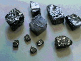 The cubic habit of lead sulfide, which crystallizes in the NaCl (rock salt) structure