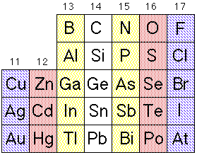 Similar shading indicates comlementary pairs that preserve the total valence electron count for AZ stoichiometry. In the zinc blende structure each AZ atom is four coordinate.