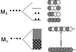 In the extended solid, many atoms interact with one another, and there will be the same number of molecular orbitals, delocalized over the entire solid, as the number of atomic orbitals being combined.