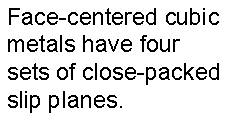 Face-centered cubic metals have 4 sets of close-packed slip planes.