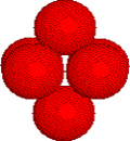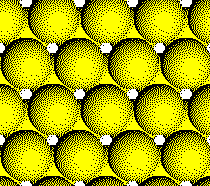 Octahedral holes are formed by three ions in one plane and three ions in an adjacent plane of a close packed array of anions. Click the link on the right to highlight the octahedron. Then click the button to rotate the tetrahedron. |