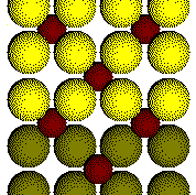 In some structures, not all of the holes between two planes of anions are filled. This page shows one arrangement that gives a half-filled set of cubic holes. Click the links on the right to view a partially filled set of cubic holes.