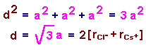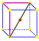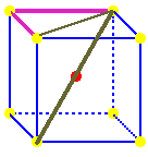 The length of the body diagonal can be determined by measuring the edge length of the unit cell by x-ray diffraction. The body diagonal is part of a right triangle composed of a unit cell edge and a face diagonal. We can calculate the length using the Pythagorean Theorem. The face diagonal is part of a right triangle with two unit cell edges. The length of the body diagonal, d, in a cubic cell can found from the length of the cubic unit cell edge. Use the links on the right to demonstrate how to calculate the body diagonal length. The links above lead to definitions.