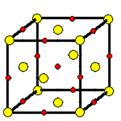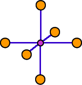 Each cation in a compound with the NaCl structure is surrounded by six anions at the corners of an octahedron. Each anion is surrounded by an octahedron of cations. The coordination number of these ions is six. The coordination geometry is octahedral. Click on any cation or anion to highlight the coordination polyhedron. Click the links above for definitions. Some of the components of the octahedra around ions on the edges or faces of a unit cell are located in adjacent unit cells. |
