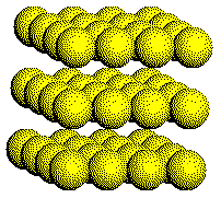 A simple cubic (SC) structure is composed of layers of atoms arranged in a square array. Atoms touch 4 other atoms within the same layer as well as 1 atom in the layer above and 1 atom in the layer below.