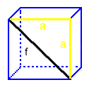The face diagonal is part of a right triangle that includes two unit cell edges. f, the length of the face diagonal can be calculated from a, the length of the cell edge using the Pythagorean Theorem.
