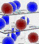This model of a face-centered cubic unit cell is constructed of Plexiglas plates with holes to hold spheres that represent atoms. Spheres are located at the corners of a cube and there is one sphere in the center of each face of the cube in a face-centered cubic model. It is important to remember that the model is not exactly correct. The spheres (atoms) along the face diagonal of the unit cell touch in a metal with a face-centered cubic cell. Click the links on the right to demonstrate the topics listed above.