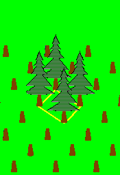 In order to describe a crystal structure in terms of a unit cell, we must know the contents and their arrangement in the unit cell. In this example, we can describe the unit cell as containing a part of a tree inside each corner. Click the links on the right to illustrate concepts explained above. |