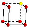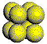 The coordination number of an atom in a simple cubic structure is 6. The highlighted center atom has a coordination number of 6. The six nearest neighbors around a metal atom in a simple cubic structure are arranged at the corners of an octahedron. In order to see the octahedral coordination sphere in a simple cubic structure, it is necessary to include atoms on lattice points in adjacent unit cells. Click the links on the right to illustrate the topics above, and click the underlined text above for definitions.