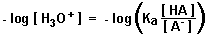 Just as the negative log of the hydrogen ion concentration is called pH, the negative log of the acid ionization constant is called pKa. With this substitution and since - log (a / b) = log (b / a), the equation can be written: