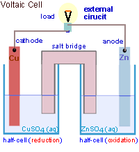 - The external circuit is used to conduct the flow of electrons between the electrodes of the voltaic cell and usually includes a load.