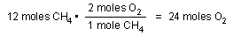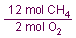 In this case, our known material is methane (since we know we have 12 moles of it) and our unknown material is oxygen (since we want to calculate how much the methane will produce). |