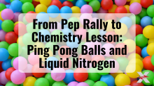 Our science team has performed this explosion several times. Each time with great surprise and fanfare from the crowd. The explosion, the water vapor trail with a mass of colorful ping pong balls hurtling towards the gym ceiling, makes this a crowd-pleasing event. Every time I’ve done it, I always get questions in class about the science behind it, along with a lot of “what if we….?”. I encourage you to try this experiment and share in the fun.