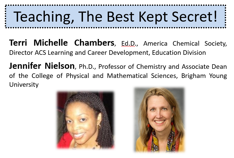 Presenters: Terri Michelle Chambers, Ed.D., Director- ACS Learning and Career Development, Education Division; Jennifer Nielson, Ph.D., Associate Dean- College of Physical and Mathematical Sciences and Prof. of Chemistry, Brigham Young University