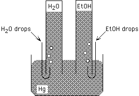 and ethanol to the top of columns of Hg, as shown below. What will happen