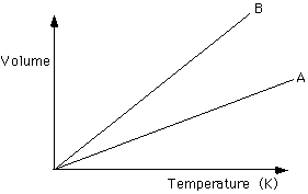 plot A represents masses of the two gases and plot B represents volume of the two gases