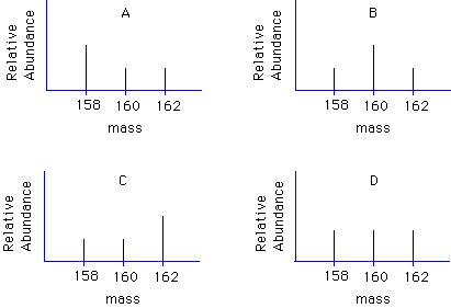 158 amu, 160 amu, 162 amu, all three are equally likely