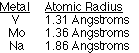 V and Mo, V and Na, Mo and Na