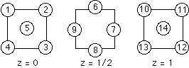 At what value of z is its center?