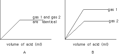 plot A represents the volumes of the two gases (H2S and H2Se) and plot B represents the masses of the two gases