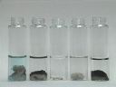 Five different metals have been placed in silver nitrate solutions. Note the formation of silver metallic crystals on the metals' surfaces and the eventual darkening of the crystals.(32)