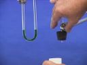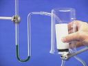 A U-tube containing a green liquid is connected with tubing to a stoppered flask. A syringe is attached to the flask and is used to change the pressure on the green liquid in the U-shaped tube. As you view the following sequences, try to determine what properties of gases affect the pressure.(32)