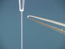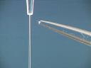 Liquid is contained in a burette and allowed to flow down into a beaker in a thin stream. When the bakelite rod is rubbed with fur and brought near the stream of liquid the stream is attracted toward the rod and deflected from its straight downward path. The same thing happens when a glass rod rubbed with silk is brought near the stream of liquid; the stream of liquid is deflected toward the rod.(42)