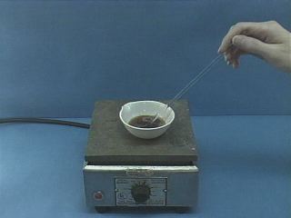 Liquids; Molten Sugar (First Frame) The file name of this item is S592A.JPG and is located in the directory/folder named R1ST/R0540 © 1997 Division of Chemical Education, Inc., American Chemical Society. All rights reserved.