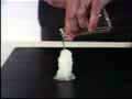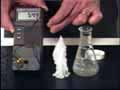A solution of sodium acetate in water is in a flask. A few small crystals of sodium acetate are placed on the top of the laboratory bench. The solution from the flask is poured over the crystals. As the solution contacts the crystals, its color changes from clear to white very rapidly and it crystallizes into a solid mound of material that builds up into a fairly tall vertical structure. The probe from a digital thermometer touches the solid sodium acetate to test the temperature. It is seen that the material is quite warm. The process of crystallization is an exothermic process in which heat is given off to the surroundings. The crystallization occurred rapidly once a seed crystal was available. The seed crystal provides a structure around which the ions of sodium acetate could form a solid crystal lattice.