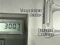 A sealed vial containing only benzene liquid and vapor is placed in a Thiele tube which is then filled with silicone fluid. Heat is applied with a Bunsen burner.Temperature increases